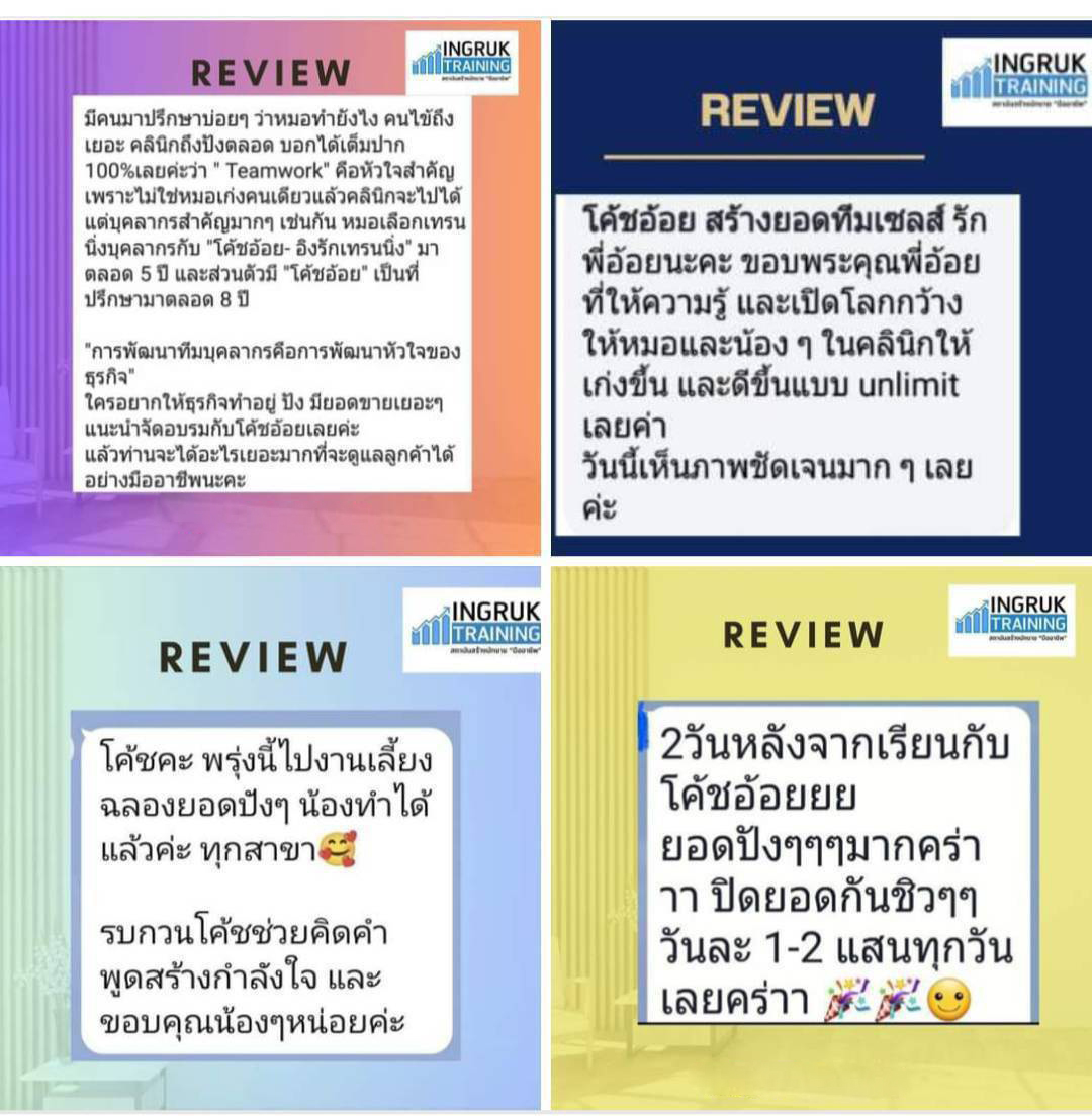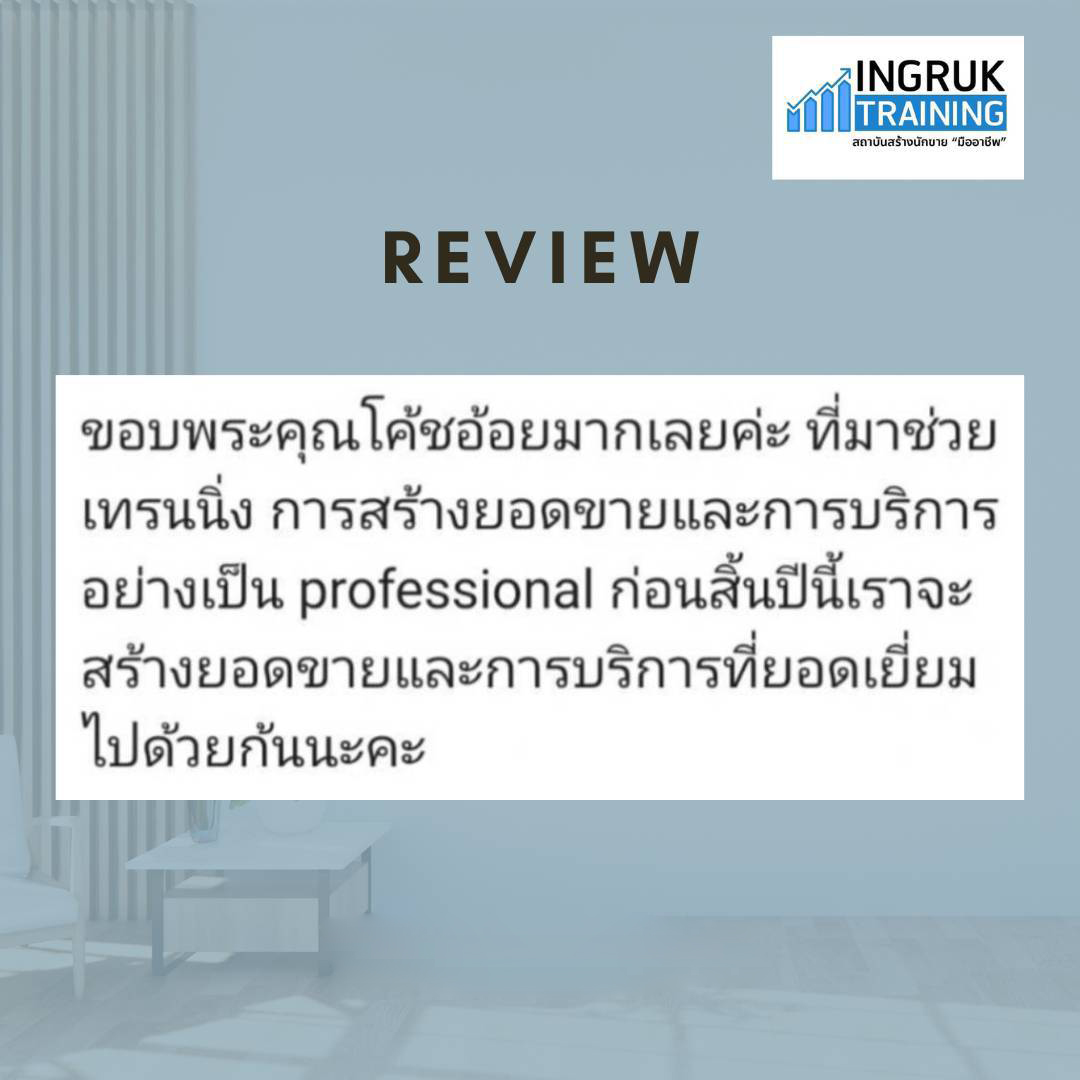 อิงรักเทรนนิ่งรับจัดอบรมสอนเทคนิคการขายและการให้บริการให้กับบุคลากรตามองค์กรต่างๆ ทุกธุรกิจที่เกี่ยวกับการขายและการให้บริการ ทั่วประเทศทั้งแบบ IN HOUSE และ PUBLIC